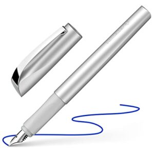 Stilou cu profil de prindere cauciucat ergonomic și vârf din oțel inoxidabil de înaltă calitate cu vârf de iridiu M. Design modern cu aspect metalic elegant în culoarea „grafit” și curbe izbitoare. Echipat cu o clemă metalică robustă și cartus de cerneală standard, albastru regal, șters. Potrivit în egală măsură pentru dreptaci și stângaci.
